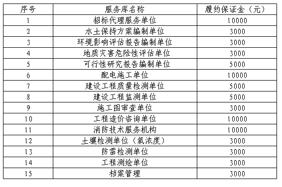 南平綠發(fā)集團(tuán)有限公司因經(jīng)營需要,擬成立服務(wù)庫,現(xiàn)實施2023年服務(wù)庫招錄,本次招錄合作期三年,要求如下: 一、本次招錄類別及資格條件 本次共招錄15個類別服務(wù)庫,綠發(fā)集團(tuán)及下屬公司在今后的工作中,在不違反有關(guān)法律、法規(guī)規(guī)定的前提下,結(jié)合集團(tuán)服務(wù)庫管理辦法,從服務(wù)庫中選擇具體的服務(wù)單位。滿足資格的南平市市屬國企單位可直接入庫,入庫的南平市市屬國企單位家數(shù)包含在對應(yīng)服務(wù)庫家數(shù)內(nèi)。若入圍家數(shù)少于3家不能形成有效竟?fàn)幍?,集團(tuán)公司將從庫外另行再邀請相應(yīng)服務(wù)單位參與比選。本次具體類別及資格條件要求如下: 1. 招標(biāo)代理服務(wù)單位(10家) 具備提供工程招標(biāo)代理服務(wù)的企業(yè)法人單位。且根據(jù)《閩建筑函[2018]26號》的規(guī)定投錄人應(yīng)當(dāng)取得公司法人《營業(yè)執(zhí)照》(登記營業(yè)范圍須包含工程招標(biāo)代理業(yè)務(wù))且完成并通過福建省住房和城鄉(xiāng)建設(shè)政務(wù)服務(wù)系統(tǒng)登記企業(yè)基本信息。(提供營業(yè)執(zhí)照復(fù)印件加蓋公章、福建省住房和城鄉(xiāng)建設(shè)政務(wù)服務(wù)系統(tǒng)登記證明材料加蓋公章) 2. 水土保持方案編制單位(5家) 具備建設(shè)項目水土保持方案編制水平評價證書 1星及以上資質(zhì)。(提供營業(yè)執(zhí)照和資質(zhì)證書復(fù)印件加蓋公章) 3. 環(huán)境影響評估報告編制單位(5家) 具備環(huán)境影響評估報告編制能力,且在環(huán)境影響評價信用平臺登記的單位。同時不得被列入《建設(shè)項目環(huán)境影響報告書(表)編制監(jiān)督管理辦法》規(guī)定的限期整改名單、環(huán)境影響評價失信“黑名單”。(提供環(huán)境影響評價信用平臺登記證明材料加蓋公章、未被列入限期整改名單和環(huán)境影響評價失信“黑名單的證明材料) 4. 地質(zhì)災(zāi)害危險性評估單位(5家) 具備自然資源主管部門頒發(fā)的乙級及以上地質(zhì)災(zāi)害危險性評估單位資質(zhì)。(提供營業(yè)執(zhí)照和資質(zhì)證書復(fù)印件加蓋公章) 5. 可行性研究報告編制單位(6家) 具備可行性研究報告編制能力,且應(yīng)是通過全國投資項目在線審批監(jiān)管平臺備案的工程咨詢單位(建筑工程、市政公用工程)專業(yè)。(提供通過全國投資項目在線審批監(jiān)管平臺備案相關(guān)信息截圖、營業(yè)執(zhí)照復(fù)印件、資質(zhì)證書復(fù)印件加蓋公章) 6. 配電施工單位(5家) 具備建設(shè)行政主管部門頒發(fā)的電力工程施工總承包或送變電工程專業(yè)承包三級及以上資質(zhì),并已通過南平電業(yè)局入網(wǎng)審查。(提供資質(zhì)證書復(fù)印件、通過南平電業(yè)局入網(wǎng)審查證明材料加蓋公章) 7. 建設(shè)工程質(zhì)量檢測單位(6家) 具備建設(shè)行政主管部門頒發(fā)的建設(shè)工程質(zhì)量檢測資質(zhì)。(提供營業(yè)執(zhí)照復(fù)印件和資質(zhì)證書復(fù)印件加蓋公章) 8. 建設(shè)工程監(jiān)測單位(6家) 具備建設(shè)行政主管部門核發(fā)的合格有效的工程勘察專業(yè)類(巖土工程物探測試檢測監(jiān)測)乙級及以上資質(zhì)或工程勘察綜合甲級資質(zhì)。(提供營業(yè)執(zhí)照復(fù)印件和資質(zhì)證書復(fù)印件加蓋公章) 9. 施工圖審查單位(5家) 具備建設(shè)行政主管部門頒發(fā)的二類及以上施工圖審查資質(zhì)證書。(提供營業(yè)執(zhí)照復(fù)印件和資質(zhì)證書復(fù)印件加蓋公章) 10.工程造價咨詢單位(6家) 具備提供工程造價咨詢服務(wù)的企業(yè)法人單位。且根據(jù)《閩建筑函[2021]60號》的規(guī)定投錄人應(yīng)當(dāng)取得具有工程造價咨詢經(jīng)營范圍的營業(yè)執(zhí)照且完成并通過福建省住房和城鄉(xiāng)建設(shè)政務(wù)服務(wù)系統(tǒng)登記企業(yè)基本信息。(提供營業(yè)執(zhí)照復(fù)印件、福建省住房和城鄉(xiāng)建設(shè)政務(wù)服務(wù)系統(tǒng)截圖加蓋公章) 11.消防技術(shù)服務(wù)機(jī)構(gòu)(6家) 符合《應(yīng)急管理部關(guān)于印發(fā)〈消防技術(shù)服務(wù)機(jī)構(gòu)從業(yè)條件〉的通知》的消防技術(shù)服務(wù)機(jī)構(gòu)(建筑消防設(shè)施維護(hù)保養(yǎng)檢測)。(提供營業(yè)執(zhí)照復(fù)印件、福建省消防技術(shù)服務(wù)信息平臺的截圖證明等相關(guān)證明材料加蓋公章) 12.土壤檢測單位(氡濃度)(5家) 具備市場監(jiān)督管理部門頒發(fā)的具有CMA標(biāo)志的資質(zhì)認(rèn)定證書。(提供營業(yè)執(zhí)照復(fù)印件和資質(zhì)證書復(fù)印件加蓋公章) 13.防雷檢測單位(6家) 具備氣象主管機(jī)構(gòu)頒發(fā)的雷電防護(hù)裝置檢測資質(zhì)。(提供營業(yè)執(zhí)照復(fù)印件和資質(zhì)證書復(fù)印件加蓋公章) 14.工程測繪單位(6家) 具備行業(yè)主管部門頒發(fā)的工程測繪資質(zhì)。(提供營業(yè)執(zhí)照復(fù)印件和資質(zhì)證書復(fù)印件加蓋公章) 15.檔案管理(5家) 具備行業(yè)主管部門頒發(fā)的福建省檔案服務(wù)機(jī)構(gòu)備案證明(提供營業(yè)執(zhí)照復(fù)印件、福建省檔案服務(wù)機(jī)構(gòu)備案證明材料加蓋公章) 二、招錄須知: 1. 招錄報名時間:2023年07月17日至202