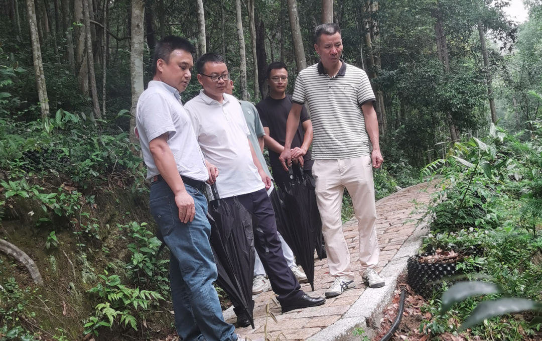 8月19日,集團(tuán)總經(jīng)理練必欽同志一行驅(qū)車(chē)來(lái)到邵武市二都國(guó)有林場(chǎng),實(shí)地考察南平市國(guó)家儲(chǔ)備林質(zhì)量精準(zhǔn)提升工程項(xiàng)目,開(kāi)展調(diào)研工作。邵武市廣森營(yíng)林投資有限責(zé)任公司經(jīng)理林輝、邵武市二都國(guó)有林場(chǎng)場(chǎng)長(zhǎng)劉紅躍、南平儲(chǔ)備林建設(shè)發(fā)展有限公司總經(jīng)理趙福宏等陪同調(diào)研。 邵武市廣森營(yíng)林投資有限責(zé)任公司作為南平市國(guó)家儲(chǔ)備林質(zhì)量精準(zhǔn)提升工程項(xiàng)目邵武市域內(nèi)項(xiàng)目建設(shè)單位,其經(jīng)理林輝同志首先介紹了幾年來(lái)邵武市在項(xiàng)目建設(shè)中所取得的成效。練必欽總經(jīng)理詳細(xì)詢(xún)問(wèn)了項(xiàng)目建設(shè)進(jìn)度、亮點(diǎn)、堵點(diǎn)、難點(diǎn)以及項(xiàng)目投資、運(yùn)營(yíng)計(jì)劃,又冒雨實(shí)地考察了邵武市二都國(guó)有林場(chǎng)林下經(jīng)濟(jì)建設(shè)情況,聽(tīng)取了邵武市二都國(guó)有林場(chǎng)場(chǎng)長(zhǎng)劉紅躍關(guān)于邵武市二都國(guó)有林場(chǎng)利用林下空間發(fā)展中草藥產(chǎn)業(yè)經(jīng)驗(yàn)介紹。