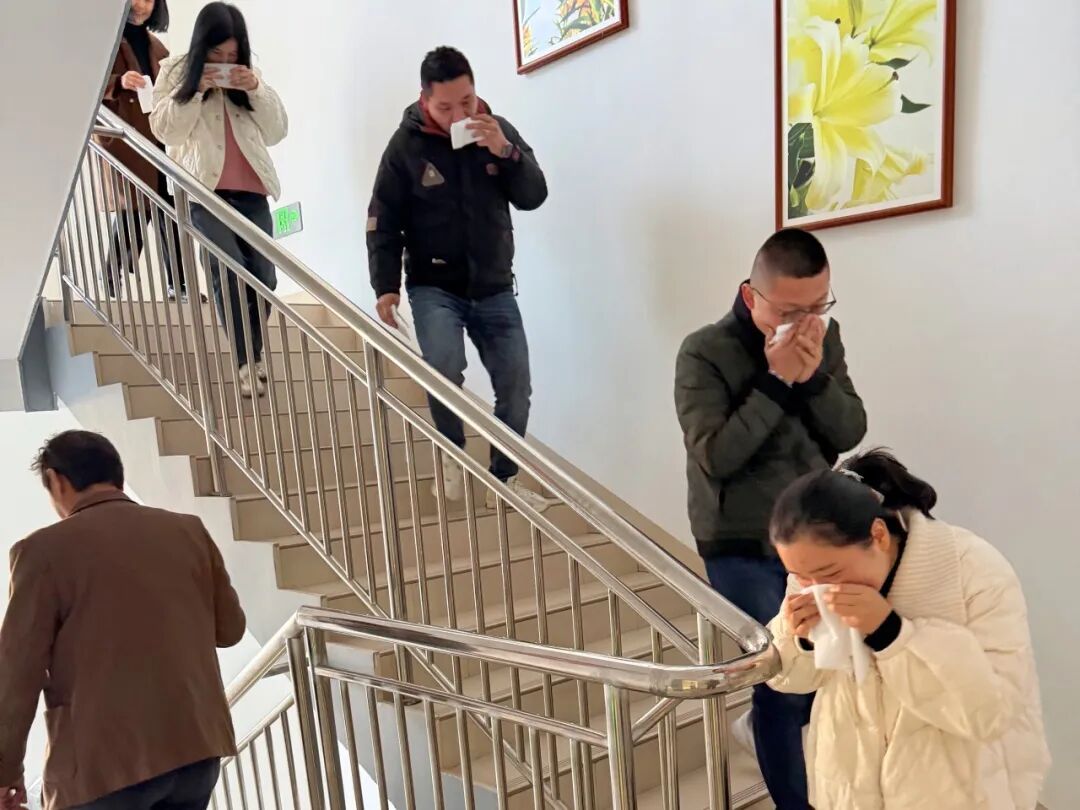 理論授課結(jié)束后,一場無預告的實戰(zhàn)演練隨即拉開帷幕。隨著尖銳的警報聲突然響起,演練正式啟動。集團副總經(jīng)理黃曉斌擔任此次演練的總指揮,迅速統(tǒng)籌協(xié)調(diào)各項工作。在疏散引導員的有序指揮下,全體員工保持冷靜,用濕毛巾或衣物掩住口鼻,采取彎腰低姿的正確姿勢,沿著預定疏散路線快速、有序地向室外安全區(qū)域撤離。整個疏散過程緊張而有序,最終僅用 3 分鐘便完成了全員安全撤離,充分檢驗了集團應(yīng)急疏散預案的科學性與可操作性,也展現(xiàn)了員工們良好的應(yīng)急反應(yīng)能力與協(xié)作精神。